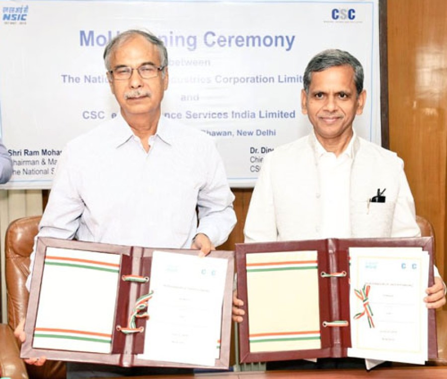 एनएसआईसी का ई-गवर्नेंस सर्विसेज इंडिया से समझौता सीएससी को एनएससी पोर्टल www.msmemart.com के माध्यम से एनएसआईसी की विभिन्न सुविधाओं का उपयोग करने में सक्षम बनाएगा। सीएससी के सीईओ डॉ दिनेश कुमार त्यागी ने कहा कि सीएससी विपणन, वित्त, प्रौद्योगिकी और अन्य सुझावों को शामिल करते हुए एनएसआईसी एकीकृत सहायता सेवाओं की सुविधाओं को प्राप्त करने में डिजिटल सशक्तिकरण के माध्यम से वीएलई और एमएसएमई की सहायता करेगा।