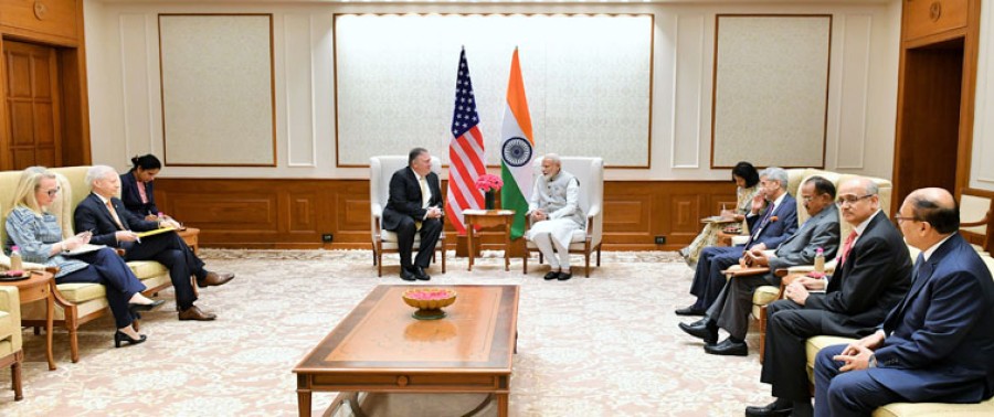 प्रधानमंत्री नरेंद्र मोदी ने विदेश मंत्री माइकल आर पोम्पेयो के साथ बातचीत में भारत सरकार के नए कार्यकाल में रणनीतिक साझेदारी के लिए अपने दृष्टिकोण को रेखांकित किया और कहा कि यह साझेदारी, परस्पर विश्वास और साझा हितों के सिद्धांत पर आधारित है। अमेरिकी विदेश मंत्री ने कहा कि अमरीकी सरकार भारत के साथ मजबूत द्विपक्षीय संबंध बनाना चाहती है और साझा लक्ष्यों को प्राप्त करने के लिए साथ मिलकर काम करना चाहती है। प्रधानमंत्री नरेंद्र मोदी ने व्यापार और अर्थव्यवस्था, ऊर्जा, रक्षा, आतंकवाद के विरूद्ध लड़ाई और दोनों देशों के लोगों के बीच संपर्क के क्षेत्र में द्विपक्षीय संबंधों की पूरी क्षमता हासिल करने के लिए अपनी प्रतिबद्धता व्यक्त की।