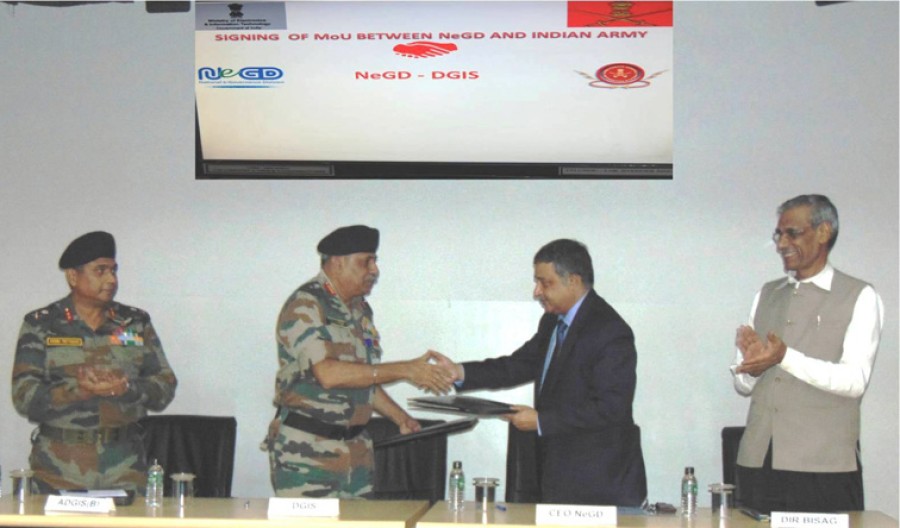 समस्त विकास संबंधी ढांचे, संरचनाओं और कार्यप्रणाली को औपचारिकरूप देने के लिए सूचना प्रणाली के महानिदेशक और कर्नल कमांडेंट कोर ऑफ ईएमई लेफ्टिनेंट जनरल अनिल कपूर और एमएस राव, अध्यक्ष और सीईओ एनई जीडी ने बीआईएसएजी के निदेशक टीपी सिंह की उपस्थिति में एक समझौता ज्ञापन पर हस्ताक्षर किए। रक्षा मंत्रालय और इलेक्ट्रॉनिक्स और सूचना प्रौद्योगिकी मंत्रालय के बीच अपनी तरह की पहली अंतर-मंत्रालयी पहल है और इससे आईए के लिए सहयोगात्मक तरीके से नवीन समाधान खोजने के लिए इसी तरह के संयुक्त ढांचे का निर्माण होना सुनिश्चित है।