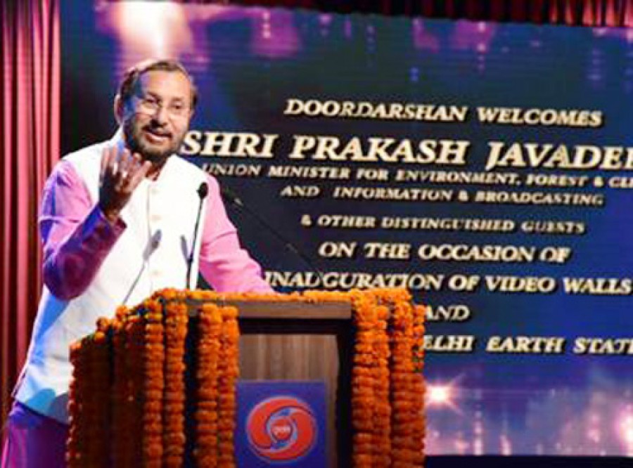 नई दिल्ली। केंद्रीय सूचना और प्रसारण मंत्री प्रकाश जावड़ेकर ने आज दिल्ली दूरदर्शन केंद्र में सभी आठ स्टूडियो में वीडियो वॉल और अर्थ स्टेशन का उद्घाटन किया और दर्शकों की अनुभूति बढ़ाने के लिए वीडियो वॉल की महत्ता पर जोर दिया। उन्होंने कहा कि सूचना और प्रसारण मंत्रालय की तीन वर्षीय कार्ययोजना के अंतर्गत दूरदर्शन का आधारभूत ढांचा बढ़ाने के लिए सहयोग दिया जा रहा है और सार्वजनिक क्षेत्र के प्रसारणकर्ता में आमूल परिवर्तन करने के लिए अत्याधुनिक वीडियो वॉल और स्पेक्ट्रम सक्षम सैटेलाइट उपकरण इस दिशा में एक कदम है। दूरदर्शन की भूमिका की सराहना करते हुए प्रकाश जावड़ेकर ने कहा कि दूरदर्शन चैनल को विश्वसनीयता के साथ देखा जाता है। उन्होंने इस अवसर पर अधिकारियों से डीडी फ्री डिश को वर्तमान में 3.25 करोड़ घरों से बढ़ाकर 5 करोड़ घरों तक पहुंचाने के प्रति कार्य करने के लिए कहा। प्रकाश जावड़ेकर ने शीघ्र ही दूरदर्शन में कार्यक्रम और उच्च गुणवत्ता के कार्यक्रम बनाने के लिए क्रियेटिव प्रमुख की तैनाती करने की भी घोषणा की।