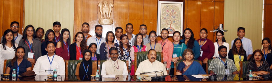 नई दिल्ली। ‘भारत को जानो कार्यक्रम’ के अंतर्गत 9 देशों से भारत यात्रा पर आए युवा समूह ने राजधानी दिल्ली में केंद्रीय पूर्वोत्तर क्षेत्र विकास, प्रधानमंत्री कार्यालय, कार्मिक, जन शिकायत एवं पेंशन, परमाणु ऊर्जा और अंतरिक्ष राज्यमंत्री डॉ जितेंद्र सिंह से मुलाकात की। इन देशों में फिजी से 7, गुयाना से 6, म्यांमार से 3, दक्षिण अफ्रीका से 2, सूरीनाम से 5, त्रिनिदाद और टोबैगो से 7, मॉरीशस से 7, रीयूनियन द्वीप से 1, इज़राइल से 2 प्रतिभागी हैं, जिनमें 26 युवतियां और 14 युवक हैं। भागीदार राज्य हरियाणा और पंजाब के सहयोग से 54वां भारत को जानो कार्यक्रम 1 अगस्त से 25 अगस्त 2019 तक चलेगा। युवा समूह ने 6 अगस्त से लेकर 15 अगस्त 2019 तक साझेदार राज्यों का दौरा किया।