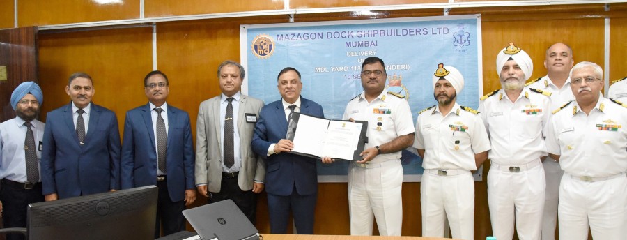 मुंबई। मझगांव डॉक शिपबिल्डर्स लिमिटेड यानी एमडीएल देश में रक्षा क्षेत्र की अग्रणी सरकारी जहाज निर्माण कंपनी है, जो मेक इंन इंडिया कार्यक्रम के तहत लगातार देशसेवा में लगी हुई है। एमडीएल ने मुंबई में भारतीय नौसेना के लिए स्कॉर्पीन श्रेणी की दूसरी पनडुब्बी खंदेरी की आपूर्ति की। सेना की ओर से पनडुब्बी हासिल करने के दस्तावेज पर एमडीएल के अध्यक्ष व प्रबंध निदेशक राकेश आनंद और नौसेना के पश्चिमी कमान के नौसैनिक कमांडर बी सिवकुमार ने एमडीएल के निदेशकों और नौसैनिक अधिकारियों की मौजूदगी में हस्ताक्षर किए। खंदेरी को जल्द ही भारतीय नौसेना में शामिल किया जाएगा।