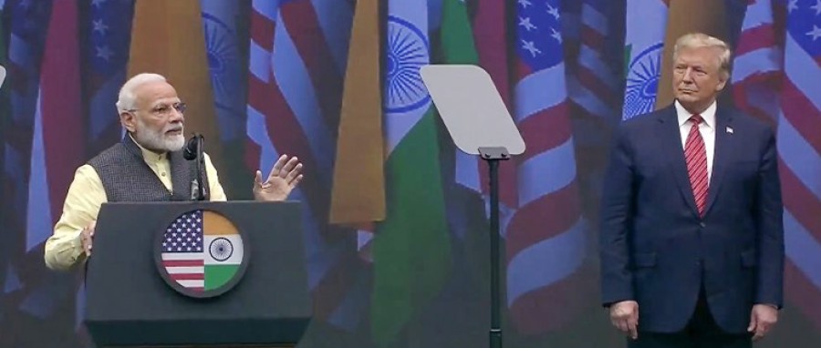 अमेरिका के राष्ट्रपति डोनाल्ड जे ट्रम्प ने भी कार्यक्रम को संबोधित किया और कहा कि प्रधानमंत्री नरेंद्र मोदी भारत और उसके नागरिकों के लिए असाधारण काम कर रहे हैं। उन्होंने प्रधानमंत्री को उनकी अभूतपूर्व चुनावी जीत के लिए भी बधाई दी। उन्होंने कहा कि भारत और संयुक्त राज्य अमेरिका के बीच संबंध पहले से बेहतर हुए हैं। प्रधानमंत्री की विकास की नीतियों को सलाम करते हुए राष्ट्रपति डोनाल्ड ट्रम्प ने कहा कि भारत ने प्रधानमंत्री नरेंद्र मोदी नेतृत्व में लगभग तीन सौ मिलियन लोगों को गरीबी से बाहर निकाला है, यह अविश्वसनीय है। उन्होंने कहा कि प्रधानमंत्री नरेंद्र मोदी के नेतृत्व में भारत, दुनिया का एक मजबूत एवं संपन्न गणराज्य बन रहा है। राष्ट्रपति ने भारतीय समुदाय के योगदान के लिए धन्यवाद दिया और कहा कि उनका प्रशासन भारतीय समुदाय की बेहतरी के लिए प्रतिबद्ध है। ह्यूस्टन में प्रधानमंत्री का स्वागत करते हुए हाउस के प्रमुख नेता स्टेनि होनर ने कहा कि संयुक्त राज्य अमेरिका आधुनिक भारत से प्रेरित है। उन्होंने कहा कि प्रधानमंत्री मोदी चुनौतियों को ध्यान में रखते हुए राष्ट्र का नेतृत्व कर रहे हैं, भारत ने निर्विवाद रूपसे अंतरिक्ष में एक नया मुकाम हासिल किया है और साथ ही लाखों लोगों को गरीबी से ऊपर उठाने में भी समान रूपसे काम किया है। इससे पहले ह्यूस्टन के मेयर सिल्वेस्टर टर्नर ने प्रधानमंत्री नरेंद्र मोदी को सम्मान, एकजुटता और लंबे समय से चले आ रहे भारत-ह्यूस्टन संबंध के लिए 'ह्यूस्टन-की' भी भेंट की।