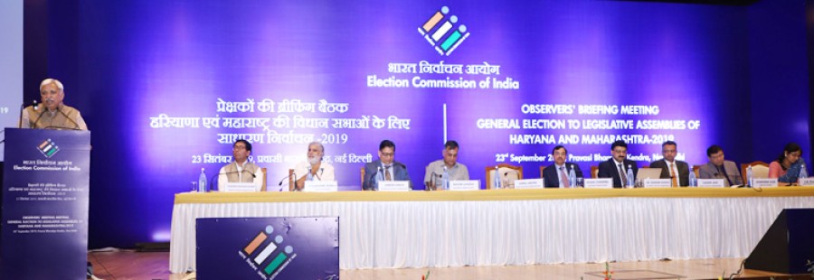 नई दिल्ली। भारत निर्वाचन आयोग ने अगले महीने होने वाले हरियाणा तथा महाराष्ट्र विधानसभा चुनाव के लिए तैनात किए जानेवाले पर्यवेक्षकों संग बैठक की, जिसमें भारतीय प्रशासनिक सेवा, भारतीय पुलिस सेवा, भारतीय राजस्व सेवा तथा और भी केंद्रीय सेवाओं के लगभग 500 अधिकारी शामिल हुए। इन अधिकारियों को सामान्य पुलिस तथा व्यय पर्यवेक्षकों के रूपमें तैनात किया जा रहा है। इस अवसर पर मुख्य निर्वाचन आयुक्त सुनील अरोड़ा ने पर्यवेक्षकों को उनकी महत्वपूर्ण भूमिका की याद दिलाते हुए पारदर्शी, भागीदारी मूलक और मतदाता अनुकूल चुनाव सम्पन्न कराने पर बल दिया, विशेषकर दिव्यांगों और वरिष्ठ नागरिकों के लिए जिन्हें सहायता की आवश्यकता होती है। उन्होंने कहा कि पर्यवेक्षकों को भारत निर्वाचन आयोग के नियमों और मानक संचालन प्रकियाओं का पालन सुनिश्चित करना चाहिए।