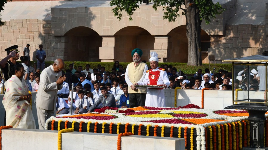 राष्ट्रपति रामनाथ कोविंद ने कहा कि गांधीजी की दृष्टि और कार्यों में व्यक्तिगत तथा सामूहिक जीवन का प्रत्येक आयाम समाहित है, उन्होंने हमें सामुदायिक एकता, अस्पृश्यता की समाप्ति, महिलाओं का सशक्तिकरण, शिक्षा, स्वच्छता, पर्यावरण और जल संरक्षण का मार्ग दिखाया है। राष्ट्रपति ने कहा कि स्वच्छ भारत मिशन को एक आंदोलन का रूप देकर देशवासियों ने राष्ट्रपिता को सच्ची श्रद्धांजलि दी है। उन्होंने कहा कि समावेशी विकास, सार्वजनिक जीवन में पारदर्शिता व ईमानदारी गरीबों को स्वास्थ्य देखभाल की सुविधा, किसानों को सहयोग तथा जल संसाधनों का प्रभावी उपयोग आदि पर हमारे राष्ट्र का विशेष ध्यान गांधीजी के विचारों के अनुरूप है, आइए हम मिलकर महात्मा गांधी की विरासत को मजबूत बनाने का संकल्प लें।