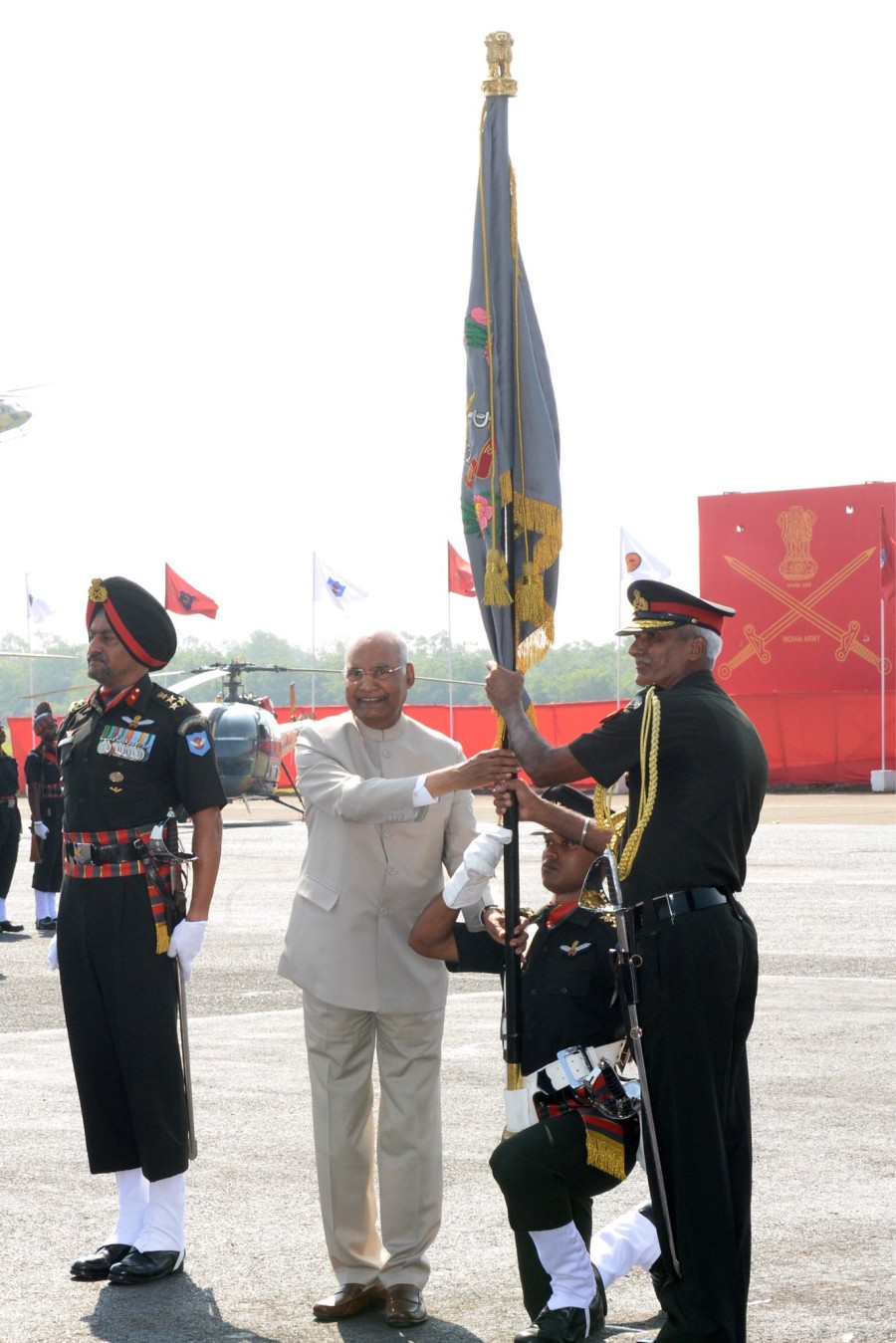 राष्ट्रपति ने आर्मी एविएशन कोर को कलर देकर सम्मानित किया