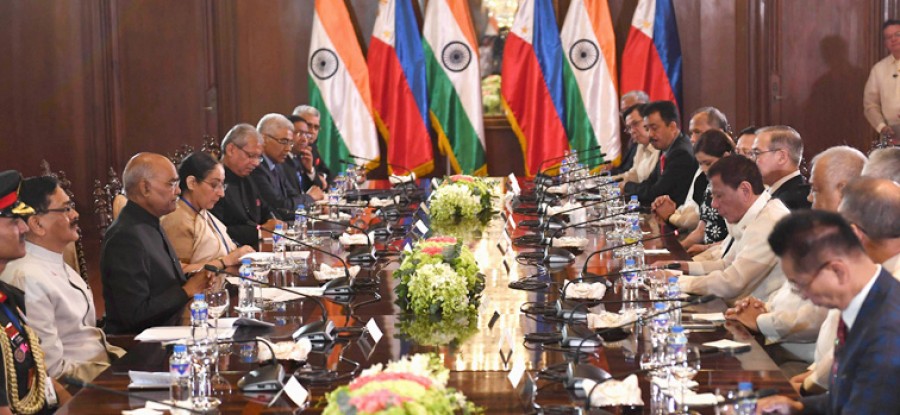राष्ट्रपति ने कहा कि भारत के लिए आसियान अत्यंत महत्व का क्षेत्र है और भारत एक मजबूत, एकीकृत और समृद्ध आसियान की परिकल्पना करता है एवं आसियान भारत-प्रशांत के उभरते हुए शानदार परिदृश्य में महत्वपूर्ण भूमिका निभा रहा है। उन्होंने कहा कि भारत का आसियान के साथ जुड़ाव भारत की एक्ट ईस्ट पॉलिसी और रणनीति का एक महत्वपूर्ण तत्व रहा है और रहेगा। इस अवसर पर भारत और फिलीपींस के बीच समुद्री, सुरक्षा, पर्यटन, विज्ञान और प्रौद्योगिकी एवं संस्कृति क्षेत्र में समझौते हुए। राष्ट्रपति ने फिलीपींस के राष्ट्रपति रोड्रिगो रोआ डुटर्टे द्वारा उनके सम्मान में आयोजित भोज में भाग लिया। राष्ट्रपति ने कहा कि यह वर्ष दोनों देशों की द्विपक्षीय यात्रा में एक मील का पत्थर है। राष्ट्रपति ने कहा कि यह यात्रा हमारे राजनयिक संबंधों की 70वीं वर्षगांठ का उत्सव मनाने और फिलीपींस-भारत की द्विपक्षीय साझेदारी के लिए हमारी प्रतिबद्धता का प्रतीक है।