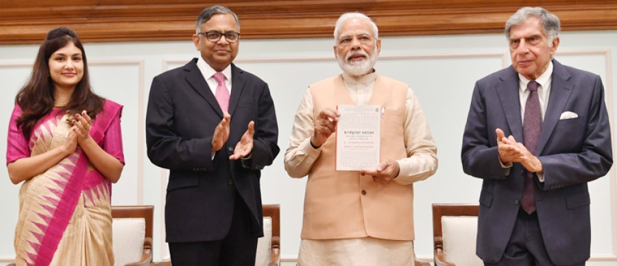 नई दिल्ली। प्रधानमंत्री नरेंद्र मोदी ने ब्रिजिटल नेशन पुस्तक का विमोचन किया और इसकी पहली प्रति रतन टाटा को भेंट की। यह पुस्तक एन चंद्रशेखरन और रूपा पुरुषोत्तम ने लिखी है। प्रधानमंत्री ने विमोचन कार्यक्रम को संबोधित करते हुए लेखकों की एक दूरदर्शी पुस्तक लिखने के लिए सराहना की, जो सकारात्मकता और आशावाद से परिपूर्ण है तथा प्रौद्योगिकी के महत्व के बारे में गहराई से जानकारी देती है। उन्होंने कहा कि यह पुस्तक ऐसे समय में प्रकाशित हुई है, जब प्रौद्योगिकी सकारात्मक रूपसे लाखों भारतीयों का जीवन बदल रही है। प्रधानमंत्री ने यह समझने की आवश्यकता पर जोर दिया कि प्रौद्योगिकी एक सेतु है न कि एक विभाजक। उन्होंने कहा कि प्रौद्योगिकी सबका साथ, सबका विकास अर्जित करने के लिए आकांक्षाओं और उपलब्धि, मांग और प्रदायगी, सरकार और शासन के बीच सेतु का निर्माण करती है।