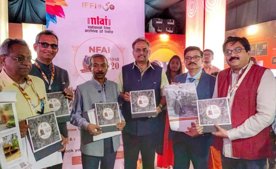 एनएफएआई के 2020 के कैलेंडर में भारतीय सिनेमा में उपयोग किए गए भारतीय संगीत वाद्य यंत्रों के खजाने का संकलन है। कैलेंडर में राजकपूर को तम्बुरा बजाते (वाल्मीकि 1946), जयश्री गडकर को वीणा बजाते हुए (सीता मैया 1964), विष्णुपंत पगनीस को इकतारा बजाते हुए (नरसी भगत 1940), टीएल देशपांडे को टेनोर बैंजो बजाते हुए (गोलाचा गणपति 1953) शिवाजी गणेशन को नादस्वरम बजाते हुए (थिलाना मोहनबल 1968), नेरा लट्टुरामा पोडुबल को इद्दिका बजाते हुए (थम्पू 1978), राजकुमार को शहनाई बजाते हुए (सनधी अपन्ना 1977), कल्पना को वायलीन बजाते हुए (गेजेपुजे 1970) और किशोर कुमार को हार्मोनियम बजाते हुए (शाबाश डैडी 1978) दिखाया गया है। कैलेंडर पर एक क्यूआर कोड दिया गया है, जिसे स्कैन करने पर चित्र और संबंधित फिल्म की जानकारी मिल सकती है। कैलेंडर, दीवार और टेबल के लिए उपलब्ध है और इसे www.nfai.gov.in पर ऑनलाइन बुकिंग के जरिए खरीदा जा सकता है।