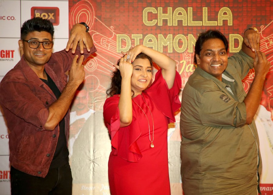 मुंबई। अमेरिका के न्यू जर्सी की रहने वाली गायिका जश ने टीवी स्टार मानव गोहिल और डांस मास्टर गणेश आचार्य की मौजूदगी में अपना नया म्यूजिक वीडियो 'छल्ला डायमंड दा' मुंबई में रिलीज़ किया। ज़ी म्यूजिक कंपनी द्वारा रिलीज़ इस म्यूज़िक वीडियो में मानव गोहिल और कोरियोग्राफर गणेश आचार्य भी थिरकते नज़र आ रहे हैं। म्यूज़िक वीडियो में रोचक कोहली ने संगीत दिया है और गीतकार कुमार ने लिखा है। गायिका जश के म्यूज़िक वीडियो का निर्देशन डांस मास्टर गणेश आचार्य ने किया है।