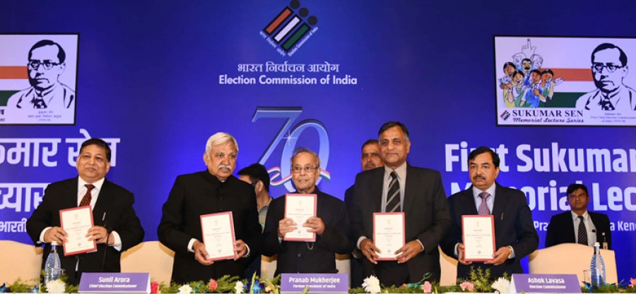 नई दिल्ली। भारत निर्वाचन आयोग ने आयोग के पहले अध्यक्ष सुकुमार सेन की याद में प्रथम सुकुमार सेन स्मृति व्याख्यान का आयोजन किया। गौरतलब है कि सुकुमार सेन ने 21 मार्च 1950 से 19 दिसंबर 1958 तक पहले मुख्य चुनाव आयुक्त के रूपमें काम किया था। भूतपूर्व राष्ट्रपति प्रणब मुखर्जी ने भारत में चुनाव प्रक्रिया और चुनाव प्रणाली की चुनौतियों पर उद्घाटन व्याख्यान दिया। उन्होंने राष्ट्र की प्रगति में इस संस्था के महत्व को अपने व्याख्यान में रेखांकित किया। प्रणब मुखर्जी ने सुकुमार सेन के बारे में कहा कि उन्होंने नवजात शिशु विशेषज्ञ की भूमिका निभाई और लगभग 3,000 चुने हुए प्रतिनिधियों वाली भारतीय लोकतंत्र की पहली फसल तैयार की। उन्होंने नौकरशाही के रुतबे से अलग होकर अपनी भूमिका निभाई और समस्त प्रक्रिया के प्रति निष्पक्ष होकर अपना कार्य पूरा किया।