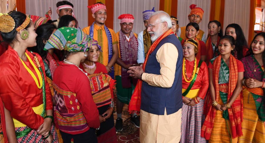 प्रधानमंत्री नरेंद्र मोदी ने कहा कि सरकार ने पूर्वोत्तर की विभिन्न समस्याओं के समाधान के लिए एक नया दृष्टिकोण अपनाया है। उन्होंने कहा कि ऐसा दृष्टिकोण अपनाना क्षेत्र की आकांक्षाओं और भावनात्मक मुद्दों को गहराई से समझने के बाद ही संभव हो सकता है। प्रधानमंत्री ने कहा कि सभी संबंधित व्यक्तियों के साथ विचार-विमर्श और परिचर्चा के माध्यम से समाधान ढूंढे गए हैं। उन्होंने कहा कि हमने सभी लोगों को अपना माना और किसी को भी बाहरी नहीं समझा, हम लोगों ने उन लोगों के साथ बातचीत की और उन्हें यह महसूस कराया कि वे भी हमारे अपने हैं, इससे उग्रवाद को कम करने में सहायता मिली। उन्होंने कहा कि पहले पूर्वोत्तर क्षेत्र में उग्रवाद के कारण हजार से अधिक हत्याएं होती थीं, परंतु आज मोटे तौरपर स्थिति सामान्य और शांतिपूर्ण है। प्रधानमंत्री ने कहा कि 3-4 वर्ष के दौरान पूर्वोत्तर में सड़कों का निर्माण हुआ है, जिनकी कुल लम्बाई 3000 किलोमीटर से अधिक है, नए राष्ट्रीय राजमार्गों को मंजूरी दी गई है, पूर्वोत्तर के पूरे रेल नेटवर्क को बड़ी लाइन में बदला गया है, शिक्षा, कौशल और खेल के जरिए पूर्वोत्तर के युवाओं को सशक्त बनाने पर विशेष ध्यान दिया गया है, इसके अलावा दिल्ली और बेंगलुरु में पूर्वोत्तर राज्यों के छात्रों के लिए नए छात्रावासों का निर्माण किया गया है।