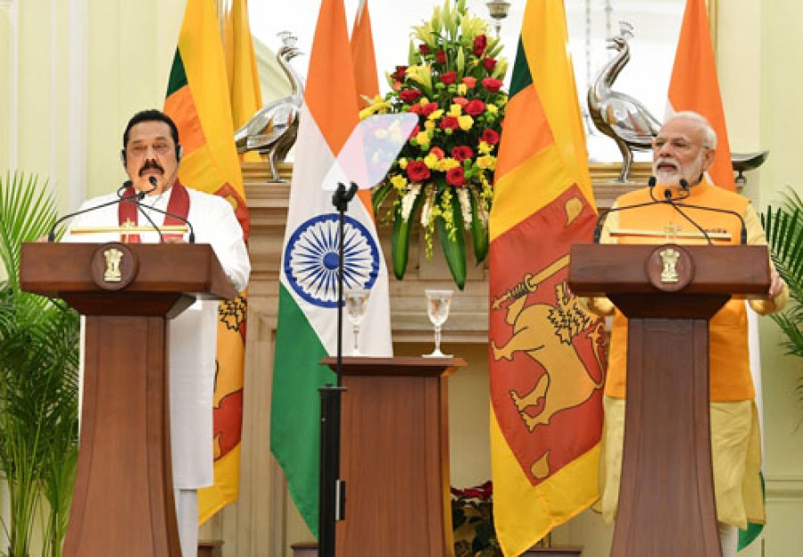 नई दिल्ली। लोकतांत्रिक समाजवादी गणराज्य श्रीलंका के प्रधानमंत्री महिंदा राजपक्षे भारत आए हुए हैं। प्रधानमंत्री नरेंद्र मोदी ने राष्ट्रपति भवन में एक औपचारिक स्वागत समारोह में प्रधानमंत्री महिंदा राजपक्षे की जोरदार अगवानी की। दोनों नेताओं के बीच हैदराबाद हाउस नई दिल्ली में विभिन्न स्तरीय बैठकें भी हुई। इस अवसर पर संयुक्त प्रेस वक्तव्य देते हुए प्रधानमंत्री नरेंद्र मोदी ने सबसे पहले तो महिंदा राजपक्षे को प्रधानमंत्री बनने पर ह्रदय से बधाई दी और पदभार संभालने के तुरंत बाद पहले विदेश दौरे पर भारत आने के लिए आभार भी जताया। प्रधानमंत्री नरेंद्र मोदी ने कहा कि कुछ दिन पहले श्रीलंका ने अपनी आज़ादी की बहत्तरवीं वर्षगांठ मनाई है, इसके लिए मैं प्रधानमंत्री महिंदा राजपक्षे और श्रीलंकावासियों को बहुत-बहुत बधाई देता हूं। नरेंद्र मोदी ने कहा कि भारत और श्रीलंका अनादिकाल से पड़ोसी हैं और घनिष्ठ मित्र भी हैं। उन्होंने कहा कि हमारे संबंधों के इतिहास का ताना-बाना संस्कृति, धर्म, आध्यात्म, कला और भाषा जैसे अनगिनत रंग-बिरंगे धागों से बुना गया है।