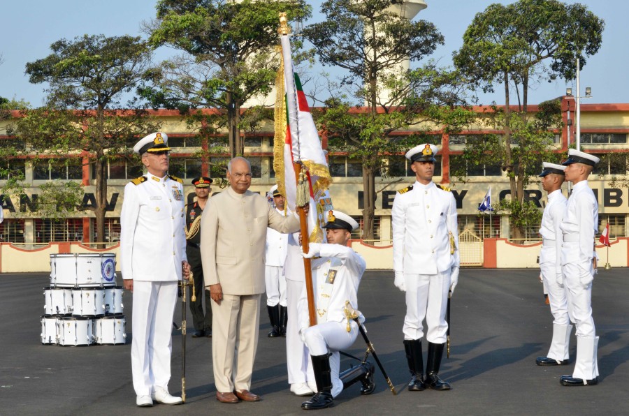 राष्ट्रपति रामनाथ कोविंद ने कहा कि हमारे व्यापार का लगभग 90 प्रतिशत हिस्सा समुद्री मार्गों से होता है, ऐसे में यह राष्ट्रीय सुरक्षा ही नहीं, बल्कि आर्थिक सुरक्षा के मामले में भी भारतीय नौसेना की भूमिका के महत्व को बढ़ाता है, जो समूचे राष्ट्र निर्माण की प्रक्रिया के व्यापक संदर्भ में भी देखा जा सकता है। राष्ट्रपति ने कहा कि एक प्रमुख शक्ति के रूपमें भारत अंतर्राष्ट्रीय सुरक्षा, व्यापार और वाणिज्य के क्षेत्र में वैश्विक प्रतिमानों को आकार देने में महत्वपूर्ण भूमिका निभाता है। उन्होंने कहा कि अंतर्राष्ट्रीय स्तरपर भारत की एक प्रमुख ताकत के रूपमें तेजी से उभरने की प्रक्रिया में हमारे सशस्त्र बलों की क्षमताओं और शौर्य ने बड़ी भूमिका निभाई है। राष्ट्रपति ने विश्वास व्यक्त किया कि आईएनएस शिवाजी व्यावसायिकता और सक्षमता के साथ अपनी भूमिका और जिम्मेदारियों का निर्वहन करते हुए आगे भी नई उपलब्धियां और उत्कृष्टता हासिल करना जारी रखेगा।