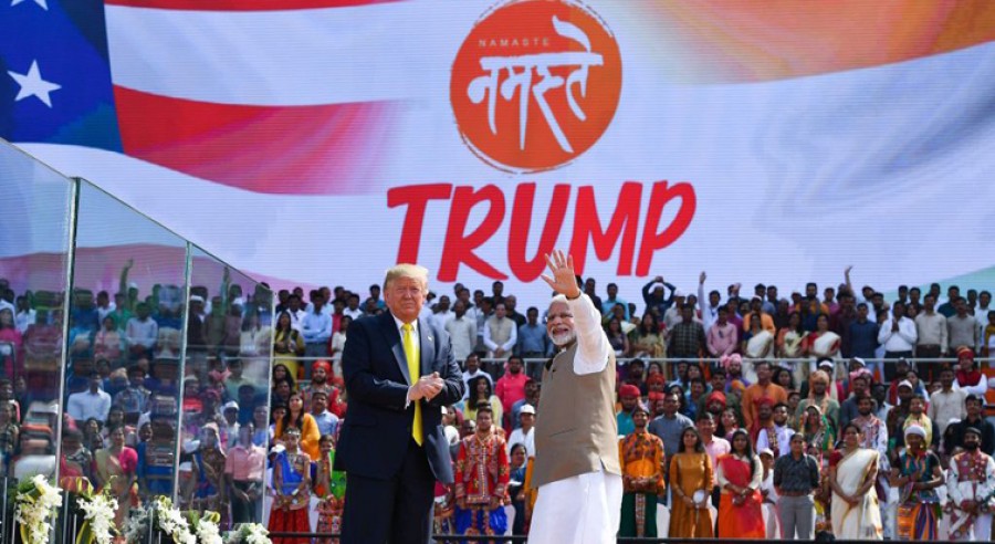 अहमदाबाद। प्रधानमंत्री नरेंद्र मोदी ने अहमदाबाद के मोटेरा स्टेडियम में अमेरिका के राष्ट्रपति डोनाल्ड ट्रंप के सम्मान में आयोजित नमस्ते ट्रंप कार्यक्रम को संबोधित करते हुए कहा है कि आज मोटेरा स्टेडियम में एक नया इतिहास बन रहा है, आज हम इतिहास को दोहराते हुए भी देख रहे हैं। प्रधानमंत्री ने कहा कि पांच महीने पहले मैं अपनी अमेरिका यात्रा की शुरुआत ह्यूस्टन में हाउडी मोदी कार्यक्रम से की थी और आज मेरे दोस्त राष्ट्रपति डोनाल्ड ट्रम्प अपनी ऐतिहासिक भारत यात्रा का आरंभ अहमदाबाद में नमस्ते ट्रंप से कर रहे हैं। नरेंद्र मोदी ने कहा कि वे अमेरिका से सीधे यहां पहुंचे हैं, इतनी लंबी यात्रा के बाद भारत में उतरते ही राष्ट्रपति डोनाल्ड ट्रम्प और उनका परिवार सीधे साबरमती आश्रम गया और फिर यहां कार्यक्रम में आया है। प्रधानमंत्री ने कहा कि दुनिया के सबसे बड़े जनतंत्र भारत में राष्ट्रपति डोनाल्ड ट्रम्प का ह्रदय से बहुत-बहुत स्वागत है, ये धरती गुजरात की है, लेकिन उनके स्वागत के लिए जोश पूरे हिंदुस्तान का है। उन्होंने कहा कि ये उत्साह, ये आसमान तक गूंजती आवाज़, ये पूरा वातावरण एयरपोर्ट से लेकर यहां स्टेडियम तक हर तरफ भारत की विविधताओं के रंग ही रंगा हुआ नज़र आ रहा है और इन सबके बीच राष्ट्रपति डोनाल्ड ट्रम्प, प्रथम महिला मेलानिया ट्रम्प, इवांका और जेरेड की उपस्थिति, राष्ट्रपति का अपने परिवार के साथ यहां आना भारत और अमेरिका रिश्तों को एक परिवार जैसी मिठास और घनिष्ठता की पहचान दे रहा है।