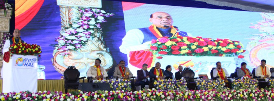 बैंगलुरू। रक्षामंत्री राजनाथ सिंह ने बैंगलुरू के हिंदुस्तान एयरोनॉक्टिस लिमिटेड में हेलीकॉप्टर प्रभाग के नए हल्के लड़ाकू हेलीकॉप्टर उत्पादन हैंगर का उद्घाटन करते हुए कहा है कि देश में मजबूत रक्षा और सुरक्षा अवसंरचना के निर्माण के मद्देनज़र ‘भारत और विश्व’ के लिए नरेंद्र मोदी सरकार ने मेक इन इंडिया को अपनाया है। उन्होंने कहा कि पांच वर्ष में भारत ने मेक इन इंडिया पहल के तहत सैन्य उपकरणों के स्वदेशी निर्माण में महत्वपूर्ण प्रगति की है। देश के आर्थिक विकास में रक्षा उद्योग की प्रमुख भूमिका का उल्लेख करते हुए रक्षामंत्री ने एचएएल जैसे रक्षा सार्वजनिक उपक्रम के महत्वपूर्ण योगदान की प्रशंसा की। उन्होंने कहा कि एचएएल ने भारत को विश्व की पांचवी सबसे बड़ी अर्थव्यवस्था बनाने में शानदार योगदान किया है, उसके प्रयासों से भारत 6 स्थानों की छलांग लगाते हुए आज विश्व की पांचवीं सबसे बड़ी अर्थव्यवस्था बन गया है। उन्होंने कहा कि रक्षा निर्यात में बढ़ोत्तरी हुई है और वह पिछले दो साल में 17,000 करोड़ रुपये के पार पहुंच गया है। आने वाले वर्ष में 35,000 करोड़ रुपये के लक्ष्य को रेखांकित करते हुए रक्षामंत्री ने विश्वास व्यक्त किया कि विभिन्न प्लेटफार्मों के जरिए एचएएल इसको हासिल करने में महत्वपूर्ण योगदान करेगा।