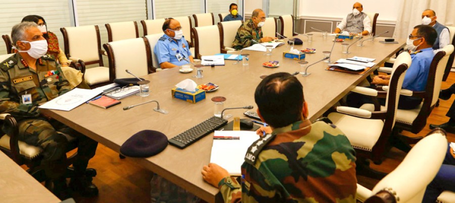 नई दिल्ली। रक्षामंत्री राजनाथ सिंह ने सशस्त्रबल चिकित्सा सेवा के कामकाज और नागरिक प्रशासन के अधिकारियों को कोविड-19 नियंत्रित करने में उनके कामकाज की समीक्षा की है। समीक्षा बैठक में रक्षा सचिव डॉ अजय कुमार, महानिदेशक लेफ्टिनेंट जनरल अनूप बनर्जी, महानिदेशक संगठन और कार्मिक लेफ्टिनेंट जनरल एके हुड्डा, नौसेना चिकित्सा सेवाओं के महानिदेशक, सर्जन वाइस एडमिरल एमवी सिंह और वायुसेना चिकित्सा सेवाओं के महानिदेशक एयर मार्शल एमएस बुटोला उपस्थित थे। इन अधिकारियों ने रक्षामंत्री को सशस्त्र बलों को परामर्श जारी करने तथा मौजूदा हालात में क्वारंटीन सुविधाओं, अस्पतालों की व्यवस्था और स्वास्थ्य सेवाओं के संबंध में नागरिक प्रशासन के अधिकारियों को दी जाने वाली मदद के विभिन्न उपायों की जानकारी दी।