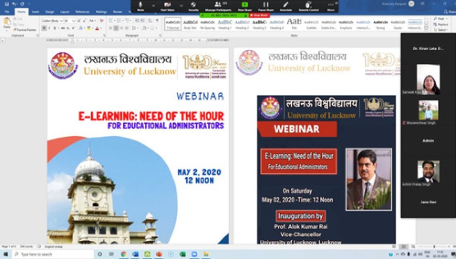 लखनऊ विश्वविद्यालय की एडीशनल डीन अकादमिक एवं शिक्षा विभाग की प्राध्यापिका डॉ किरण लता डंगवाल ने ई-लर्निंग को स्मार्ट स्टडी का साधन बताते हुए शिक्षा क्षेत्र में इसके योगदान की सार्थकता के विषय में विचार प्रस्तुत किए। डॉ विनीता प्रकाश प्रिंसिपल आईटी कॉलेज लखनऊ ने व्याख्यान में ई-लर्निंग और टेक्नोलॉजी पर आधारित शिक्षण को समय के साथ आगे बढ़ने का माध्यम बताया। प्रोफेसर अवधेश त्रिपाठी कॉमर्स विभाग लखनऊ विश्वविद्यालय ने ई-लर्निंग को आज की ज़रूरत बताते हुए टेक्नोलॉजी के ज्ञान को अति आवश्यक बताया। वेबिनार में बड़ी संख्या में शिक्षकों और प्रशासकों ने पंजीकरण किया था।