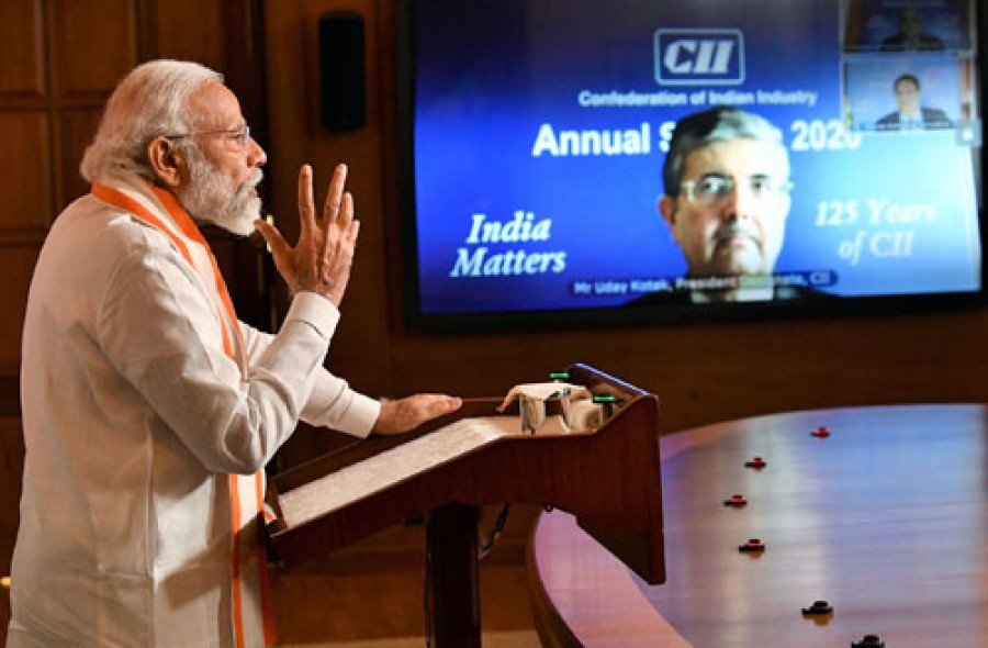 प्रधानमंत्री ने भारत को आत्मनिर्भर बनाने के लिए कोरोना के बाद सीआईआई जैसे बड़े संस्थानों को एक नई भूमिका में आगे आने का आह्वान किया। उन्होंने देश में बने उत्पादों को दुनिया के लिए बनाने की आवश्यकता पर बल दिया। उन्होंने उद्योग से सभी क्षेत्रों में उत्पादकता बढ़ाने के लिए लक्ष्य निर्धारित करने का आग्रह किया। उन्होंने व्यक्तिगत सुरक्षा उपकरणों पीपीई उद्योग को 3 महीने के भीतर करोड़ों का बनाने के लिए उद्योग की प्रशंसा की। प्रधानमंत्री ने उद्योग से आग्रह किया कि ग्रामीण अर्थव्यवस्था में किसानों के साथ निवेश और साझेदारी को खोलने का पूरा लाभ उठाएं, अब गांव के नज़दीक स्थानीय कृषि उत्पादों के समूहों के लिए आवश्यक बुनियादी ढांचा तैयार किया जा रहा है। उन्होंने कहा कि सरकार निजी क्षेत्र को देश की विकासयात्रा केलिए भागीदार मानती है। उन्होंने वादा किया कि आत्मनिर्भर भारत अभियान से जुड़ी उद्योग की हर जरूरत का ख्याल रखा जाएगा। उन्होंने उद्योग जगत से देश को आत्मनिर्भर बनाने का संकल्प लेने और इस संकल्प को पूरा करने के लिए अपनी पूरी ताकत लगाने को कहा।