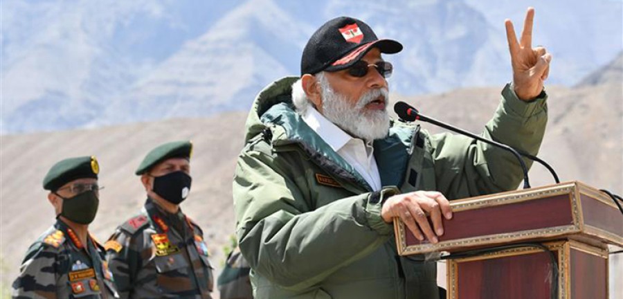 युद्ध के मैदान में कमांडर या सेनाध्यक्ष को अपने बीच देखकर कोई भी सेना उत्साहित होती है, ऐसे ही जब देश का प्रधानमंत्री उसके बीच आ पहुंचे तो देश के लिए मर मिटने के जज्बे की कोई सीमा नहीं रह जाती है, ऐसा ही दृश्य आज लद्दाख के निमू में देखने को मिला। सेना का मनोबल और भी ज्यादा हिलोरें मारने लगा जब अपने संबोधन में प्रधानमंत्री नरेंद्र मोदी ने कहा कि हमारी दो माताएं हैं जिनमें एक भारत माता है और दूसरी माता वह है, जिसने हमारे वीर सपूतों यानी जवानों को जन्म दिया है। प्रधानमंत्री ने बार-बार अपनी सेना का हौसला बढ़ाते हुए दुश्मन चीन का नाम लिए बिना उसे कूटनीतिक भाषा में कड़ा संदेश दिया। गौरतलब है कि लद्दाख का टकराव बातचीत से हल करने की कोशिश की जा रही है, तथापि भारतीय सेना चीन के किसी भी आक्रमण का कड़ा जवाब देने और चीन को पीछे धकेलने के लिए उसका हर प्रकार से सामना करने को तैयार खड़ी है। भारत की वायुसेना थलसेना और जलसेना इस समय हाई अलर्ट पर हैं और ऐसे में प्रधानमंत्री नरेंद्र मोदी का लेह लद्दाख जाना इस बात का प्रमाण है कि भारत पूरी दृढ़ता के साथ चीन से मुकाबले को खड़ा हुआ है। चीन को यह भरोसा नहीं था कि भारत लद्दाख में इतनी दृढ़ता से सामना कर सकेगा, भारत की सेना चीन के सामने नहीं झुक रही है, भले ही चीन की भारत से ज्यादा मजबूत सैन्य शक्ति है।