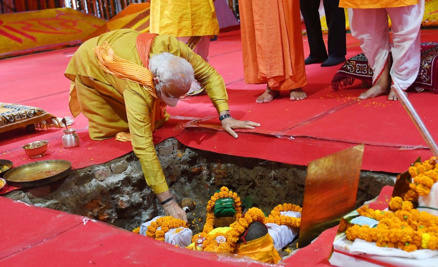 प्रधानमंत्री ने शुभ अभिजीत मुहूर्त में किया 'श्रीराम मंदिर' का शिलान्यास