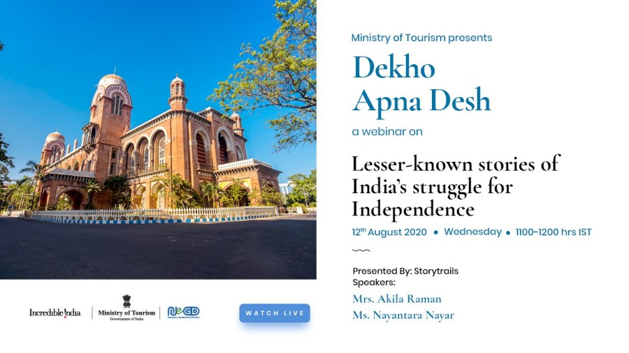 देखो अपना देश वेबिनार श्रृंखला एक भारत श्रेष्ठ भारत के तहत भारत की समृद्ध विविधता प्रदर्शित करने का प्रयास है और यह निरंतर वर्चुअल प्लेटफार्म के जरिए एक भारत श्रेष्ठ भारत की भावना को विस्तारित कर रहा है। इंडिया सिटी वाक्स एंड इंडिया विद लोकल्स के सीईओ निधि बंसल एवं रिसर्चर तथा स्टोरी टेलर डॉ सौमी राय ने वेबिनार प्रस्तुत किया और पर्यटन मंत्रालय में अपर महानिदेशक रुपिंदर बरार ने इसका संचालन किया। वेबिनार में भारतीय स्वतंत्रता की गाथा तथा 1857 में भारत के प्रथम स्वाधीनता युद्ध और उसके बाद 1947 में संपूर्ण आजादी मिलने तक की घटनाओं के क्रम का वर्चुअल रूपसे वृतांत प्रस्तुत किया गया। प्रस्तुतकर्ताओं ने उन धरोहरों एवं भवनों को रेखांकित किया, जिन्हें विद्रोह का खामियाजा भुगतना पड़ा या जो इसके परिणामस्वरूप अस्तित्व में आए। दिल्ली, कानपुर, मेरठ से लेकर देशभर के कई अन्य शहरों तक प्रस्तुतकर्ताओं ने दर्शकों को आंदोलनकारियों के बहादुरी, बलिदान एवं वीरता की कहानियां प्रदर्शित कीं।