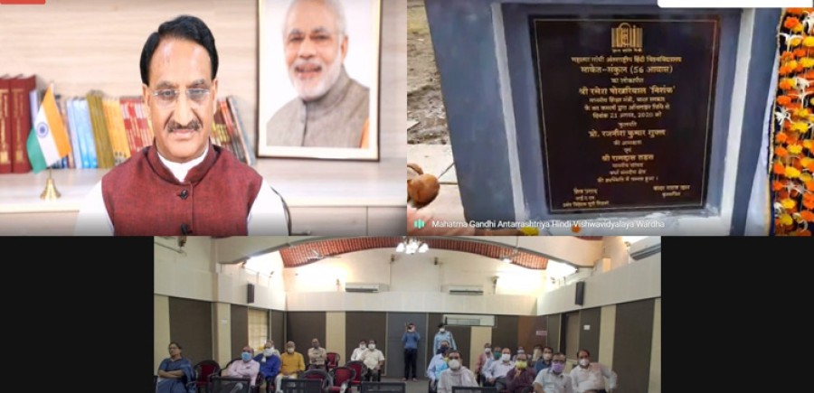 नई दिल्ली/ वर्धा। केंद्रीय शिक्षा मंत्री रमेश पोखरियाल 'निशंक' ने अध्यापकों को शोध एवं अध्यापन के लिए गुणवत्तापूर्ण वातावरण प्रदान करने के उद्देश्य से महात्मा गांधी अंतर्राष्ट्रीय हिंदी विश्वविद्यालय वर्धा के परिसर में 'साकेत-संकुल' के 57 अध्यापकीय आवासों को लोकार्पित किया। शिक्षा मंत्री ने उम्मीद जाहिर की कि महात्मा गांधी अंतर्राष्ट्रीय हिंदी विश्वविद्यालय वर्धा शिक्षा के क्षेत्र में आगे भी नेतृत्वकारी भूमिका निभाएगा। रमेश पोखरियाल ने कहा कि ‘साकेत संकुल’ में प्रवेश करने वाले शिक्षकों के मन में महात्मा गांधी वास करेंगे और जिस तरह की शिक्षा का सपना महात्मा गांधी ने देखा था, उसे यहां के शिक्षक अपने कुलपति के नेतृत्व में पूरा करेंगे। उन्होंने कहा कि यहां से निकलने वाले शिक्षार्थी राष्ट्र निर्माण के लिए काम करेंगे और पूरी दुनिया में मानवता का प्रचार करेंगे। शिक्षा मंत्री ने कहा कि गांधीजी जब अल्मोड़ा गए थे तो हिमालय के आखिरी छोर तक वे नई तालीम ले गए थे, वहीं रहकर उन्होंने अनासक्ति योग लिखा था, उसमें उनका जोर शिक्षा, संस्कृति, संस्कार और आत्मनिर्भरता पर था।