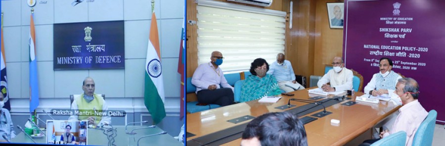 नई दिल्ली। केंद्रीय शिक्षा मंत्रालय ने शिक्षक पर्व पहल पर एनएसएस, एनसीसी, एनवाईकेएस और उन्नत भारत अभियान वॉलंटियर्स के माध्यम से नई राष्ट्रीय शिक्षा नीति-2020 के बारे में जागरुकता फैलाने के लिए राष्ट्रीय वेबिनार का आयोजन किया, जिसमें रक्षामंत्री राजनाथ सिंह मुख्य अतिथि थे। देशभर से राष्ट्रीय कैडेट कोर, राष्ट्रीय सेवा योजना, नेहरू युवा केंद्र संगठन और उन्नत भारत अभियान के वॉलंटियर्स भी वर्चुअल माध्यमों से इस वेबिनार से जुड़े। रक्षामंत्री ने वेबिनार में कहा कि नई शिक्षा नीति भारतीय इतिहास की पहली ऐसी नीति है, जिसमें बहुआयामी और बहुहितधारक सलाह प्रक्रिया को अपनाया गया है, इसमें ऑनलाइन, जमीनी और राष्ट्रीयस्तर की चर्चा-परिचर्चा शामिल है। उन्होंने कहा कि जमीनी स्तर पर विचार-विमर्श का विस्तार सभी ग्राम पंचायतों, ब्लॉक, शहरी स्थानीय निकायों, जिलों और राज्यों एवं केंद्रशासित प्रदेशों तक है।