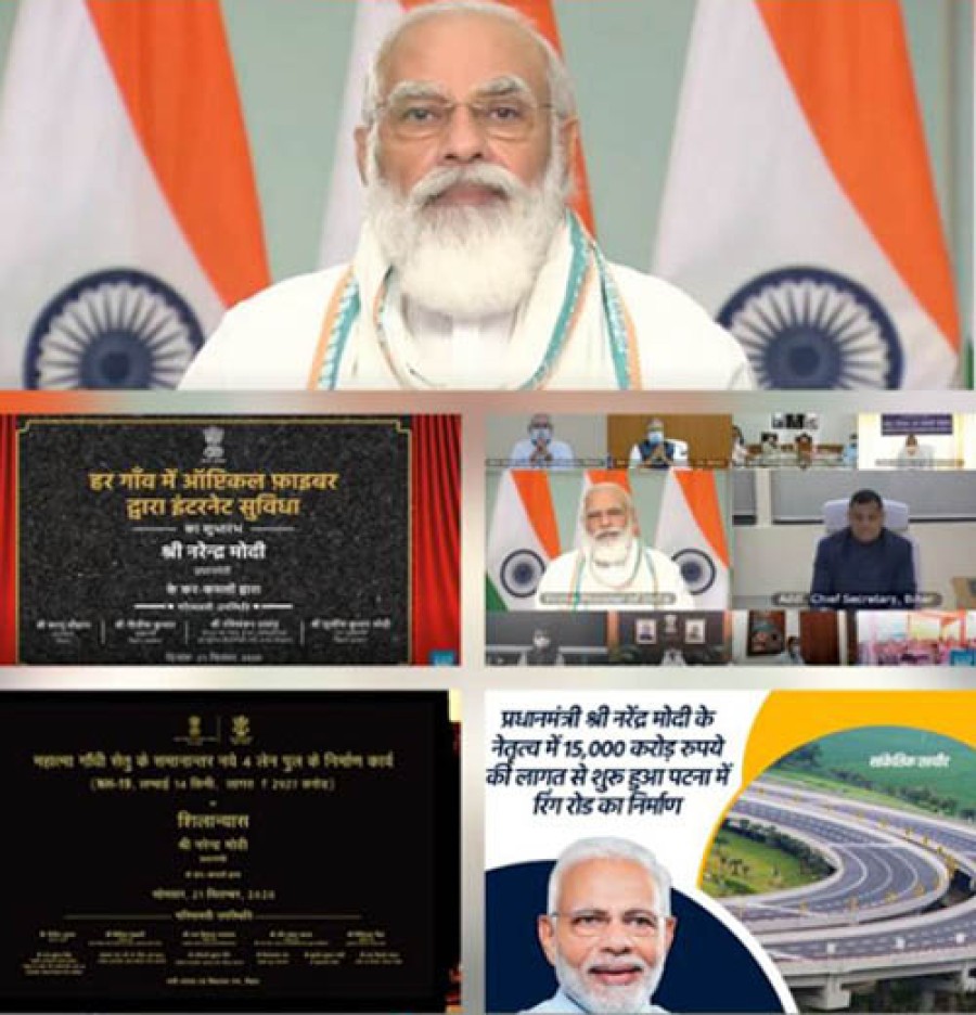 बिहार में राजमार्ग शिलान्यास और इंटरनेट सेवा का शुभारंभ किया