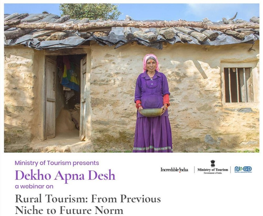 भारत के खूबसूरत गांव पर्यटन के क्षेत्र में बदलते प्रतिमान के साक्षी बने हैं। ग्रीन पुपील द गोट विलेज एंड बकरी छाप के संस्थापक रूपेश राय ने वेबिनार को प्रस्तुत किया। उन्होंने गांव से जुड़े अपने अनुभवों को साझा करते हुए कहा कि उत्तराखंड में केदारनाथ तबाही ने उनके जीवन को हमेशा के लिए बदल दिया। रूपेश राय ने कहा कि तबाही ने पानी में डूबे राज्य के बड़े हिस्से वाले राज्य उत्तराखंड के पूरे स्वरूप को बदल दिया। उन्होंने कहा कि कुछ लोगों के बेहतर जीवन की तलाश में बाहर जाने के कारण 1800 गांव खाली हो गए। रूपेश राय ने कहा कि ग्रामीण पर्यटन वास्तव में ग्रह और लोगों को लाभांवित कर सकता है, यह सामुदायिक पर्यटन की एक छवि की तरह है। रूपेश राय ने कहा कि वृहद परिप्रेक्ष्य में भारत में लगभग 6,47,000 गांव हैं। पर्यटन संस्कृति, कृषि, कला, प्रकृति, भोजन आदि के उत्प्रेरक की भूमिका निभाता है। उनके कुछ कामों में द गोट विलेज (ग्रामीण और स्थायी पर्यटन), बकरी स्वयंवर (सोशल इंजीनियरिंग द्वारा पशुधन का जीन पूल सुधार) और बकरी छाप (सीमांत हिमालयी किसानों का प्रतिनिधित्व करने वाला एक ब्रांड) शामिल हैं।