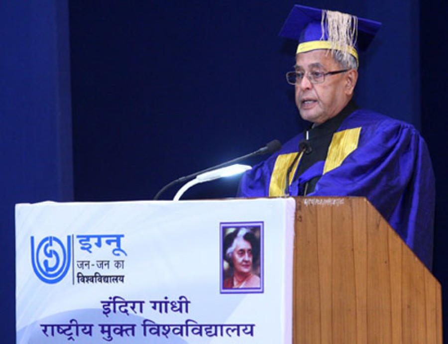 नई दिल्ली। राष्ट्रपति प्रणब मुखर्जी ने शुक्रवार को इग्नू के 26वें दीक्षांत समारोह को संबोधित किया। इस अवसर पर राष्ट्रपति ने कहा कि इग्नू की स्थापना भारतीय शिक्षा के इतिहास का एक यादगार लम्हा है, इस विश्वविद्यालय ने ऐसे लोगों को शिक्षा के बेहतर अवसर मुहैया कराए हैं, जिनकी पहुंच औपचारिक शिक्षा तक नहीं रही है या जो अपने अकादमिक पोर्टफोलियो का विस्तार करना चाहते हैं या जो अपने ज्ञान को बढ़ाने के लिए पढ़ना चाहते हैं। इग्नू ने उच्च शिक्षा को आमजन तक पहुंचाया है और यहां शिक्षा प्राप्त करने वालों में किशोर से लेकर काम करने वाले वयस्क सभी शामिल हैं।