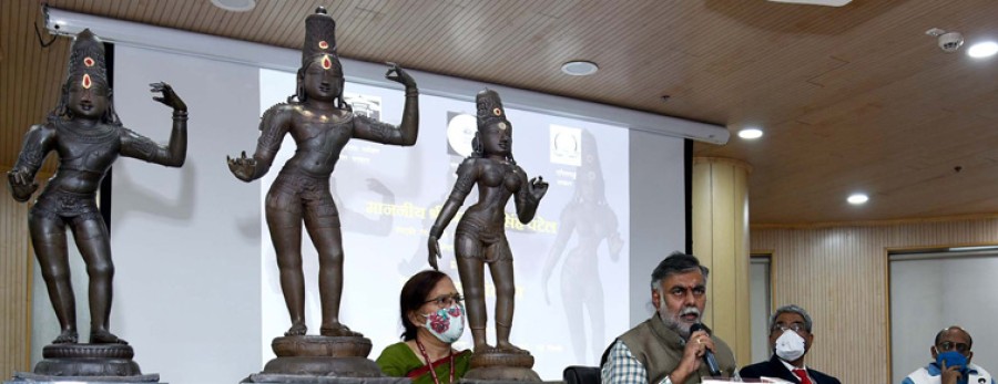 नई दिल्ली। केंद्रीय संस्कृति और पर्यटन स्वतंत्र प्रभार राज्यमंत्री प्रह्लाद सिंह पटेल ने भारतीय पुरातत्व सर्वेक्षण मुख्यालय धरोहर भवन नई दिल्ली में एक कार्यक्रम में तमिलनाडु सरकार की मूर्ति शाखा को भगवान श्रीराम, लक्ष्मण और देवी सीता की कांस्य मूर्तियां सौंपी। इससे पहले 15 सितंबर 2020 को लंदन में वहां की मेट्रोपॉलिटन पुलिस ने ये कांस्य मूर्तियां भारतीय उच्चायोग को सौंपी थीं। वर्ष 1958 में किए गए फोटो प्रलेखन के अनुसार ये मूर्तियां तमिलनाडु के नागपट्टिनम जिले के आनंदमंगलम में श्री राजगोपाल विष्णु मंदिर (विजयनगर काल में निर्मित मंदिर) की हैं। तमिलनाडु पुलिस की मूर्ति शाखा की जांच के अनुसार ये मूर्तियां 23/24 नवंबर 1978 को श्री राजगोपाल विष्णु मंदिर से चुराई गई थीं। ये कांस्य मूर्तियां भारतीय धातु कला की उत्कृष्ट कृतियां हैं और इनकी लंबाई क्रमशः 90.5 सेंटीमीटर, 78 सेंटीमीटर और 74.5 सेंटीमीटर है। शैली के हिसाब से ये मूर्तियां 13वीं शताब्दी ईस्वी पूर्व की हैं।