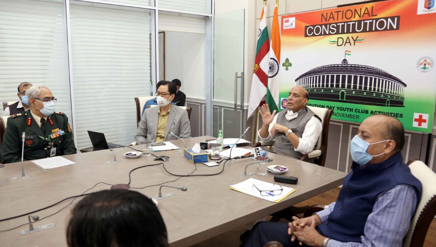 नई दिल्ली। रक्षामंत्री राजनाथ सिंह ने नेशनल कैडेट कोर के एक महीने के राष्ट्रव्यापी संविधान दिवस युवा क्लब गतिविधि कार्यक्रम का नई दिल्ली से वीडियो कॉंफ्रेंसिंग से शुभारंभ किया। कार्यक्रम का उद्देश्य देशभर में लोगों में भारतीय संविधान के बारे में जागरुकता के प्रसार के लिए युवाओं को सक्रिय करना है। रक्षामंत्री ने देश के युवाओं से संविधान की मूल भावना को समझने और उसके आदर्शों को हासिल करने के लिए निष्ठा के साथ काम करने का आग्रह किया। उन्होंने कहा कि कई वर्षों की गहन चर्चा और संवाद के बाद हमारा संविधान बना है, संविधान की प्रस्तावना हम के साथ आरंभ होती है और इस तरह से यह हमसब पर निर्भर करता है कि कैसे हम अपने देश और अपनी व्यवस्था को आगे लेकर जाते हैं।