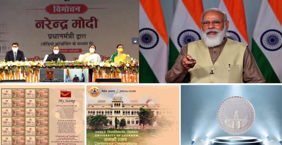 मुख्यमंत्री योगी आदित्यनाथ वर्चुअल माध्यम से लखनऊ विश्वविद्यालय शताब्दी उत्सव एवं स्थापना दिवस कार्यक्रम में शामिल हुए। रक्षामंत्री एवं लखनऊ के सांसद राजनाथ सिंह भी वीडियो कॉंफ्रेंसिंग से कार्यक्रम में शामिल हुए। मुख्यमंत्री एवं रक्षामंत्री ने इस अवसर पर डॉक्यूमेंट्री फिल्म ‘ये है लखनऊ विश्वविद्यालय’, कॉफी टेबेल बुक ‘यूनिवर्सिटी ऑफ लखनऊ’, पुस्तक ‘यूनिवर्सिटी ऑफ लखनऊ: ऐन ओडिसी ऑफ हंड्रेड ईयर्स’ तथा शताब्दी कलेंडर का विमोचन किया। प्रधानमंत्री नरेंद्र मोदीने जिन कस्टमाइज्ड माई-स्टैम्प तथा विशेष आवरण व विरूपण का विमोचन किया उन बहुमूल्य स्मृति चिन्हों पर लखनऊ विश्वविद्यालय की गौरवशाली इमारतों एवं शताब्दी उत्सव के प्रतीक चिन्ह का चित्रण किया गया है। लखनऊ विश्वविद्यालय के कला प्रांगण में आयोजित इस कार्यक्रम में दिनेश शर्मा उप मुख्यमंत्री, नीलिमा कटियार राज्यमंत्री (उच्च शिक्षा), आलोक कुमार राय कुलपति लखनऊ विश्वविद्यालय, उत्तर प्रदेश के चीफ पोस्टमास्टर जनरल कौशलेंद्र कुमार सिन्हा तथा लखनऊ मुख्यालय परिक्षेत्र के पोस्टमास्टर जनरल विवेक कुमार दक्ष उपस्थित थे।