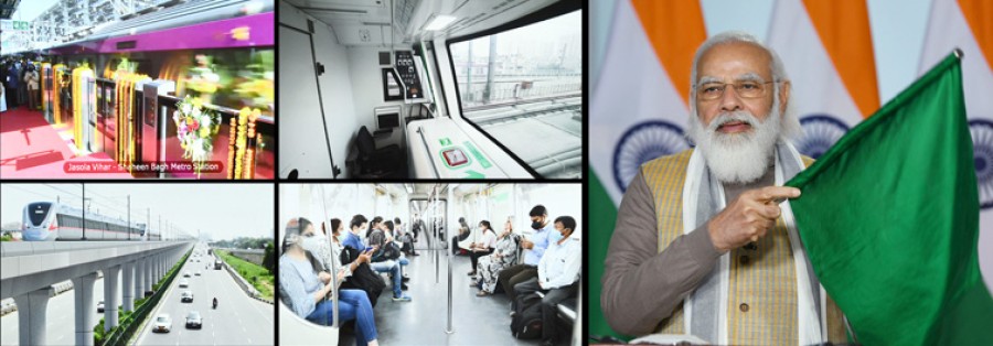 प्रधानमंत्री ने कहा कि मेट्रो केवल सार्वजनिक परिवहन का एक माध्यम मात्र ही नहीं है, बल्कि प्रदूषण को कम करने का एक बेहतर तरीका भी है, मेट्रो नेटवर्क के कारण सड़कों से हजारों वाहन कम हुए हैं, जो प्रदूषण और जाम का कारण बनते थे। प्रधानमंत्री ने कहा कि मेट्रो सेवाओं के विस्तार के लिए मेक इन इंडिया महत्वपूर्ण है, इससे लागत कम होती है, जिससे विदेशी मुद्रा की बचत होती है और देश में लोगों को अधिक रोज़गार उपलब्ध हो रहे हैं। उन्होंने कहा कि रोलिंग स्टॉक के मानकीकरण ने अब हर कोच की लागत 12 करोड़ से घटाकर 8 करोड़ कर दी है, चार बड़ी कंपनियां देश में मेट्रो कोच का विनिर्माण कर रही हैं और दर्जनों कंपनियां मेट्रो के घटकों के विनिर्माण में लगी हुई हैं, इससे मेक इन इंडिया के साथ-साथ आत्मनिर्भर भारत के अभियान में भी मदद मिल रही है। प्रधानमंत्री ने कहा कि बिना ड्राइवर वाली मेट्रो रेल की उपलब्धि से हमारा देश दुनिया के उन चुनिंदा देशों में शामिल हो गया है, जहां इस प्रकार की सुविधाएं उपलब्ध हैं। उन्होंने कहा कि ऐसी ब्रेकिंग प्रणाली का उपयोग किया जा रहा है, जिसमें ब्रेक लगाने पर 50 प्रतिशत ऊर्जा वापस ग्रिड में चली जाती है, दिल्ली मेट्रो में 130 मेगावाट सौर ऊर्जा का उपयोग किया जा रहा है, जिसे बढ़ाकर 600 मेगावाट किया जाएगा।