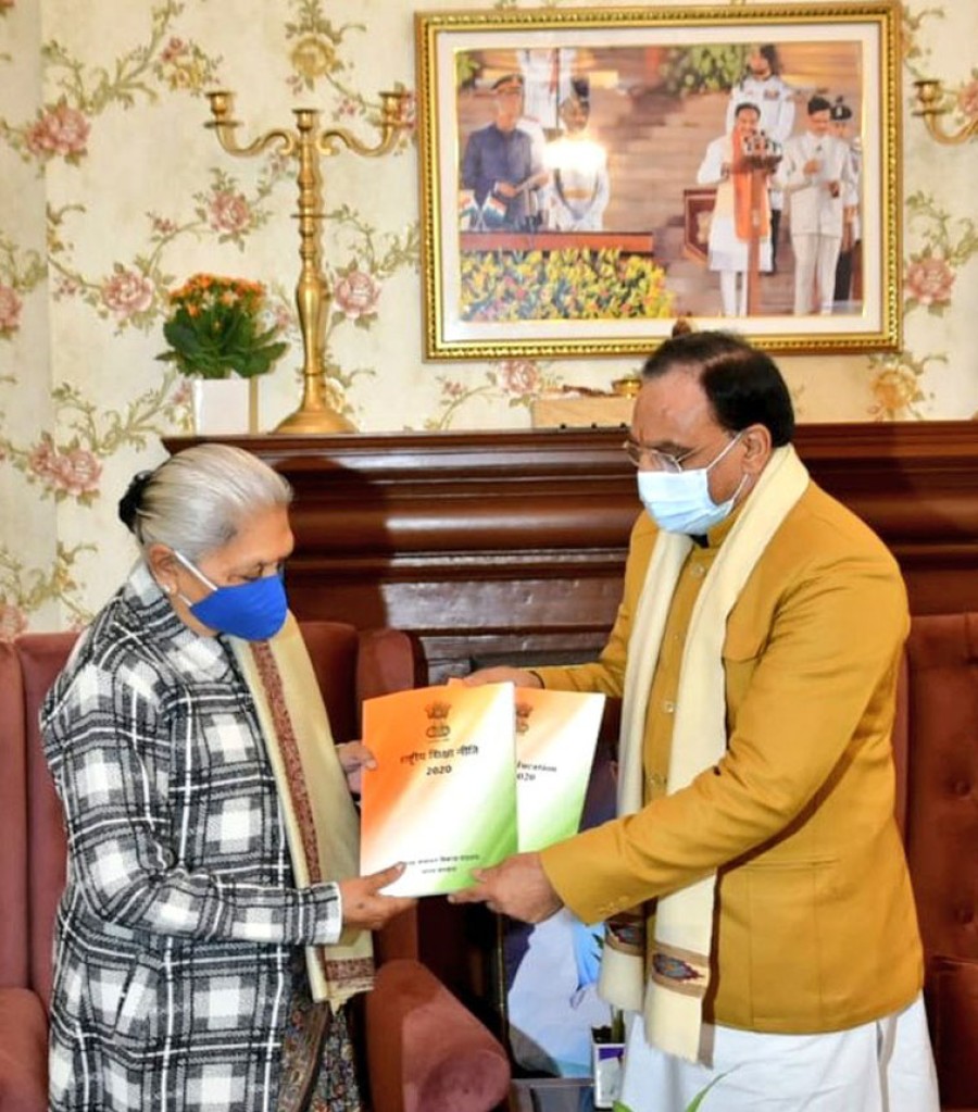 नई दिल्ली। उत्तर प्रदेश की राज्यपाल आनंदीबेन पटेल ने केंद्रीय शिक्षा मंत्री रमेश पोखरियाल ‘निशंक’ से नई दिल्ली में मुलाकात की और उनके साथ नई राष्ट्रीय शिक्षा नीति के कार्यांवयन और शिक्षा क्षेत्र से संबंधित मुद्दों पर चर्चा की। आनंदीबेन पटेल ने इस अवसर पर उत्तर प्रदेश शिक्षा विभाग की आंगनवाड़ी कार्यकर्ताओं को प्रशिक्षण प्रदान करने, शिक्षकों को प्रशिक्षण देने, छात्रों के शैक्षणिक कल्याण को सुनिश्चित करने जैसी विभिन्न पहलों के बारे में शिक्षा मंत्री को जानकारी दी। उन्होंने शिक्षा मंत्री रमेश पोखरियाल ‘निशंक’ को प्री-प्राइमरी स्तर और प्राथमिक स्तर के छात्रों के लिए शिक्षक मार्गदर्शिका पुस्तक, नई शिक्षा नीति व अपनी नवीनतम पुस्तकों की प्रतियां भी भेंट कीं।