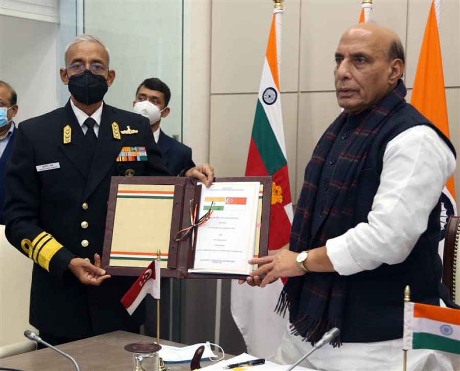 नई दिल्ली। भारत और सिंगापुर के रक्षामंत्रियों के बीच वीडियो कॉंफ्रेंस के जरिए 5वीं वार्ता हुई। दोनों देशों के बीच पिछले कुछ वर्ष में द्विपक्षीय सहयोग और रक्षा साझेदारी में मजबूती आई है। भारत-सिंगापुर के बीच रक्षा और सुरक्षा संबंधों, सशस्त्र बल की तीनों सेनाओं के साथ-साथ रक्षा प्रौद्योगिकी और औद्योगिक क्षेत्रों में भी व्यापक स्तर पर वृद्धि हुई है एवं इन क्षेत्रों के साझेदारी की संभावनाएं भी बढ़ी हैं। दोनों देशों को बहुपक्षीय मंचों और कार्यों पर समान आधार प्राप्त हुआ है। दोनों देशों के रक्षामंत्रियों ने दोनों देशों की नौसेनाओं के बीच पनडुब्बी बचाव सहायता एवं सहयोग पर हुए समझौतों पर हस्ताक्षर करके खुशी जताई।