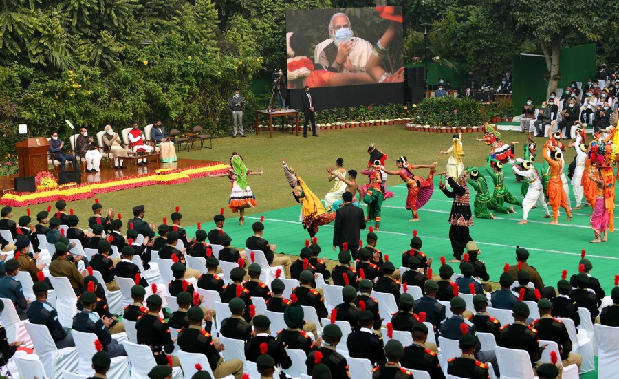 प्रधानमंत्री नरेंद्र मोदी ने बताया कि इस वर्ष भारत आजादी के 75वे वर्ष में प्रवेश कर रहा है और इस वर्ष हम श्रीगुरु तेग बहादुर का 400वां प्रकाश पर्व मना रहे हैं, इसके अलावा इस वर्ष नेताजी सुभाष चंद्र बोस की 125वीं जयंती है, जिसे पराक्रम दिवस के रूपमें घोषित किया गया है। प्रधानमंत्री ने कहा कि इन घटनाओं ने हमें अपने देश के लिए खुद को फिरसे समर्पित करने के लिए प्रेरित किया है। प्रधानमंत्री ने कहा कि भारत अपने देशवासियों की आकांक्षाओं की सामूहिक शक्ति की अभिव्यक्ति है। उन्होंने कहा कि भारत का अर्थ है-अनेक राज्य-एक राष्ट्र, अनेक समुदाय-एक भावना, अनेक मार्ग-एक लक्ष्य, अनेक रीति-रिवाज-एक मूल्य, अनेक भाषाएं-एक अभिव्यक्ति और अनेक रंग-एक तिरंगा और सभी की समान मंजिल है 'एक भारत-श्रेष्ठ भारत'। उन्होंने देश के सभी हिस्सों के मेहमानों से एक दूसरे के रीति-रिवाजों, व्यंजनों, भाषाओं और कला के बारे में जागरुकता बढ़ाने के लिए कार्य करने की अपील की।