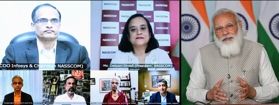 प्रधानमंत्री नरेंद्र मोदी ने कहा कि वे 2047 में आजादी के 100 वर्ष पूरे होने पर विश्वस्तरीय उत्पादों और अग्रणी लोग देने के बारे में सोचें। प्रधानमंत्री ने कहा कि भारत को 21वीं सदी की चुनौतियों के लिए अग्रसक्रिय तकनीकी समाधान देना तकनीक उद्योग की जिम्मेदारी है। उन्होंने उनसे कृषि क्षेत्र में पानी और भूमि को उपजाऊ बनाने की विधि, स्वास्थ्य और तंदुरूस्ती, टेली मेडिसिन और शिक्षा और कौशल विकास के क्षेत्र में समाधान के लिए काम करने को कहा। उन्होंने कहा कि राष्ट्रीय शिक्षा नीति, अटल टिंकरिंग लैब, अटल इन्क्यूबेशन सेंटर जैसे कदम कौशल और नवाचार को बढ़ावा दे रहे हैं और इन्हें उद्योग के सहयोग की जरूरत है। उन्होंने सीएसआर गतिविधियों के परिणामों पर ध्यान देने का भी आह्वान किया और पिछड़े क्षेत्रों एवं डिजिटल शिक्षा कार्यों पर ध्यान केंद्रित करने पर जोर दिया। उन्होंने उन अवसरों की तरफ भी ध्यान आकर्षित किया, जो उद्यमियों और नवप्रवर्तकों के लिए टियर -2 और टियर -3 शहरों में उभर रहे हैं।