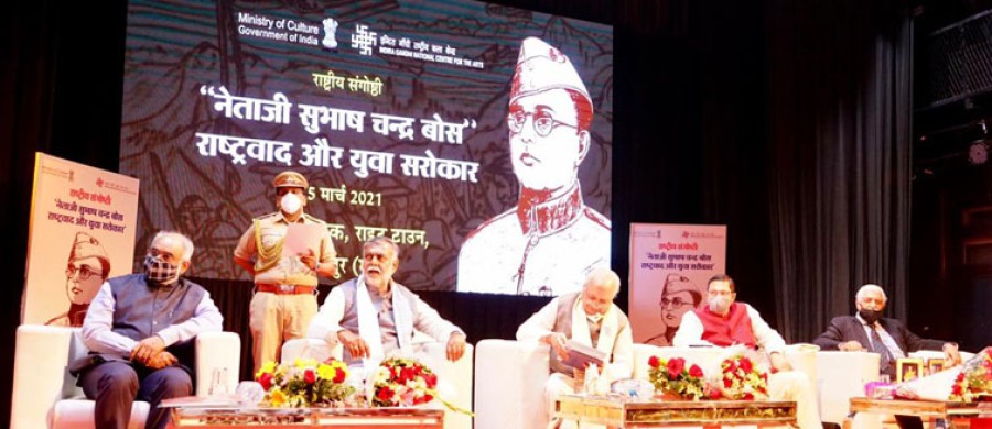 जबलपुर। नेताजी सुभाष चंद्र बोस की 125वीं जयंती मनाने के लिए भारत सरकार के संस्कृति मंत्रालय के अंतर्गत आनेवाले इंदिरा गांधी राष्ट्रीय कला केंद्र नई दिल्ली ने 5 मार्च को 'नेताजी सुभाष चंद्र बोस : राष्ट्रवाद और युवा सरोकार' विषय पर जबलपुर में एक दिवसीय राष्ट्रीय सेमिनार का आयोजन किया। केरल के राज्यपाल आरिफ मोहम्मद खान ने कार्यक्रम का उद्घाटन किया और केंद्रीय संस्कृति एवं पर्यटन राज्यमंत्री प्रहलाद सिंह पटेल इसके अध्यक्ष थे। इस अवसर पर आरिफ मोहम्मद खान ने नेताजी को 'धीरपुरुष' की संज्ञा दी और कहा कि उन्हें निंदा, प्रशंसा या मृत्यु की चिंता नहीं थी। राज्यपाल ने कहा कि नेताजी ने सर्वोच्च बलिदान का उदाहरण सबके समक्ष रखा है।