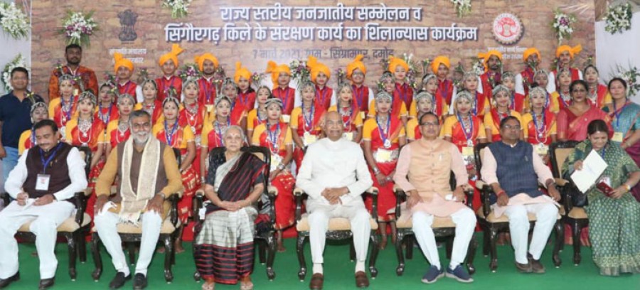 दमोह (मध्य प्रदेश)। राष्ट्रपति रामनाथ कोविंद ने मध्य प्रदेश में दमोह जिले के संग्रामपुर गांव में सिंगोरगढ़ किले के संरक्षण कार्यों का शिलान्यास किया। राष्ट्रपति ने भारतीय पुरातत्व सर्वेक्षण के नए जबलपुर सर्कल का भी उद्घाटन किया। उन्होंने दमोह के संग्रामपुर गांव में राज्यस्तरीय जनजातीय सम्मेलन को संबोधित किया, जिसका आयोजन संस्कृति मंत्रालय और मध्य प्रदेश के जनजातीय मामले विभाग ने किया था। राष्ट्रपति ने कहा कि आदिवासी समुदाय का कल्याण और विकास पूरे देश के कल्याण और विकास से जुड़ा हुआ है, इसी सोच के साथ केंद्र एवं राज्य सरकारों ने जनजातियों के आर्थिक और सामाजिक विकास के लिए विभिन्न योजनाएं संचालित की हुई हैं। उन्होंने कहा कि सबको यह प्रयास करना चाहिए कि जनजातीय समुदायों को आधुनिक विकास में भागीदारी करने का लाभ मिले, साथ ही उनकी जनजातीय पहचान एवं अस्मिता अपने सहज रूपमें बनी रहे। उन्होंने इस बात पर प्रसन्नता जताई कि मध्य प्रदेश में एकलव्य आदर्श आवासीय विद्यालयों के निर्माण और संचालन पर विशेष जोर दिया जा रहा है।