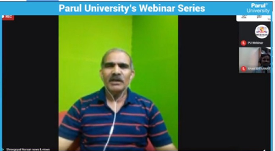 हरिद्वार/ वड़ोदरा। पारूल विश्वविद्यालय वड़ोदरा के डिपार्टमेंट ऑफ साइक्लॉजी की ओर से कुंभ दर्शन एंड इट्स सोशल एंड साइक्लोजिकल इम्पेक्ट विषय पर वेबिनार हुआ, जिसमें साहित्यकार एवं विक्रमशिला हिंदी विद्यापीठ के मानद उपकुलसचिव श्रीगोपाल नारसन ने फैकल्टी सदस्यों, विद्यार्थियों एवं प्रतिभागियों को कुंभ पर जानकारियां देते हुए कुंभ के ऐतिहासिक महत्व पर प्रकाश डाला। उन्होंने कुंभ के करीब 850 साल के प्रमाणित दस्तावेजों के आधार पर इसके इतिहास का वर्णन किया, जिनमें आदि शंकराचार्य की ओर से पहला कुंभ मेला आंरभ होने की बातसामने आती है। उन्होंने कहा कि समुद्र मंथन में निकले अमृत कलश पर देवताओं एवं राक्षसों के झगडे़ में अमृत कलश की जब कुछ बूंदें नासिक, हरिद्वार, उज्जैन एवं प्रयागराज में गिरीं, तब से अब तक इन पवित्र स्थानों पर पारंपरिक रूपसे कुम्भ मेलों के भरने की परंपरा चली आ रही है।