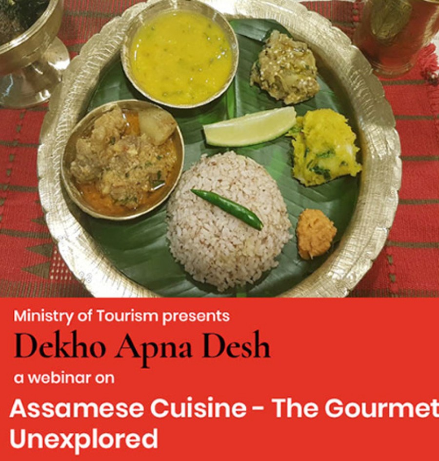 गुवाहाटी/ नई दिल्ली। पर्यटन मंत्रालय ने देखो अपना देश वेबिनार श्रृंखला के अंतर्गत 'असमिया व्यंजन-द गोरमेट अनएक्सप्लोर्ड' शीर्षक से 80वें वेबिनार का आयोजन किया। भारत में लजीज व्यंजनों, खाना पकाने की शैलियों के अनेक जीवंत उदाहरण हैं और सभी की अपनी पाक विशेषता है। स्थानीय रूपसे इसके लिए मसाले, अनाज, सब्जियां उपलब्ध हैं। भारतीय भोजन एक संतुलित भोजन है, क्योंकि इसमें सभी प्रकार के स्वाद को संतुष्ट करने की खासियत है, जैसे-नमकीन, मीठा, कड़वा या मसालेदार एक या अधिक अनाज, सब्जियों के मसाले आदि के मिश्रण खाने में मौजूद हैं। वेबिनार का फोकस असम के व्यंजनों पर किया गया, जोकि विभिन्न पाक कलाओं का संगम है।