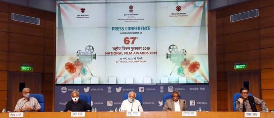 नई दिल्ली। राष्ट्रीय फिल्म पुरस्कारों के निर्णायक मंडल (ज्यूरी) ने वर्ष 2019 के लिए 67वें राष्ट्रीय फिल्म पुरस्कारों की घोषणा कर दी है। निर्णायक मंडल के अध्यक्ष और सदस्यों ने पुरस्कारों की घोषणा से पहले केंद्रीय सूचना एवं प्रसारण मंत्री प्रकाश जावड़ेकर से मुलाकात की और उन्हें पुरस्कारों का परिणाम सौंपा। ज्यूरी में भारतीय सिनेमाजगत के ख्यातिप्राप्त फिल्म निर्माता और जानी-मानी फिल्मी हस्तियां शामिल हैं। पुरस्कारों की घोषणा सेंट्रल पैनल के अध्यक्ष एन चंद्रा, गैर-फीचर फिल्म ज्युरी के अध्यक्ष अरुण चड्ढा, मोस्ट फिल्म फ्रेंडली स्टेट ज्यूरी के अध्यक्ष शाहजी एन करुण और बेस्ट राइटिंग ऑन सिनेमा ज्यूरी के अध्यक्ष सैबल चटर्जी ने की। अभिनेता सुशांत सिंह राजपूत की फिल्म छीछोरे सर्वश्रेष्ठ हिंदी फिल्म चुनी गई है।