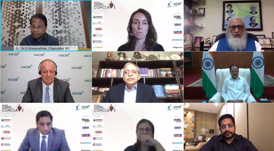 भारत और दुनिया के बिजनेस स्कूलों में शिक्षकों के सामने उत्पन्न होने वाले विभिन्न मुद्दों पर 20 से ज्यादा चिंतनशील नेताओं, डीन, निदेशकों और नीति निर्माताओं ने अपने विचार साझा किए। वेंकैया नायडू ने कोविड-19 महामारी से उत्पन्न होने वाली चुनौतियों के बावजूद इस कॉन्क्लेव का आयोजन करने के लिए एएसीएसबी और ईपीएसआई की सराहना करते हुए कहा कि यह भारतीय बिजनेस स्कूलों के लिए प्रबंधन शिक्षा में स्थानीय और वैश्विक सर्वोत्तम प्रथाओं से सीखने का एक उत्कृष्ट अवसर है। उपराष्ट्रपति ने कहा कि हमारी अर्थव्यवस्था और समाज में बी-स्कूल बहुत ही महत्वपूर्ण भूमिका निभाते हैं, क्योंकि यहां पर भविष्य के प्रबंधकों, नेताओं और नवोन्मेषकों को तैयार और प्रशिक्षित किया जाता है। उन्होंने प्रबंधन छात्रों से आग्रह किया कि वे ग्रामीण भारत की व्यापारिक और सामाजिक समस्याओं का अध्ययन करने और उनकी पहचान करने के लिए आसपास के गांवों का दौरा करें और अपने साथ उसका व्यवहारिक समाधान लेकर आएं।