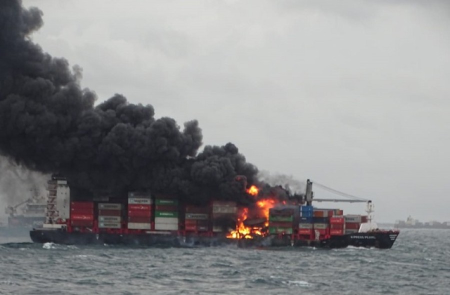 जहाज एमवी एक्सप्रेस पर्ल में आग पर काबू पाने का अभियान जारी है