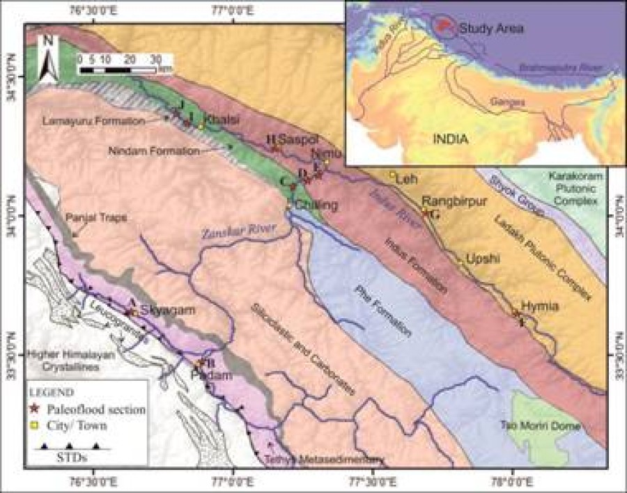 वैज्ञानिकों ने पाया है कि लद्दाख हिमालय में ये बाढ़ विभिन्न प्रकार से मूल हिमनदों/ भूस्खलन झील विस्फोट, बादल फटने, जरूरत से ज्यादा मजबूत मानसून के कारण है और इनके विभिन्न बाध्यकारी कारक और आवृत्तियां हैं, इसलिए बाढ़ भविष्यवाणी मॉडल में बड़ी अनिश्चितता जोड़ती हैं। इन बाढ़ का दस्तावेजी रिकार्ड 100 वर्ष का है जो हिमालय में बाढ़ की घटनाओं के प्राकृतिक रैंप को समझने के लिए पर्याप्त नहीं है, इसलिए पुरालेख की गहराई में जाने की जरूरत है। भारत सरकार के विज्ञान एवं प्रौद्योगिकी विभाग की स्वायत्त संस्था वाडिया हिमालय भू-विज्ञान संस्थान देहरादून के नेतृत्व में छात्रों और वैज्ञानिकों के एक दल ने जांस्कर और सिंधु के कठिन इलाकों से हिमालय की यात्रा की और लद्दाख क्षेत्र में पिछली बाढ़ के भूगर्भीय संकेतों को सूक्षम तरीकेसे देखा जो वर्तमान से 15-3 हजार वर्ष पहले के हैं। यह अध्ययन हाल में जियोलॉजिकल सोसायटी ऑफ अमेरिका बुलेटिन में ऑनलाइन प्रकाशित किया गया था। अध्ययन में बाढ़ अपने चैनल के साथ उन स्थानों पर उम्दा रेत और गाद का ढेर छोड़ देती है, जहां बाढ़ ऊर्जा काफी कम हो जाती है।