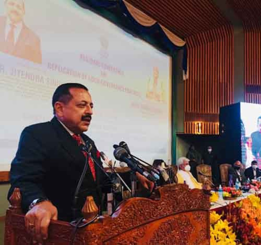 श्रीनगर। पीएमओ राज्यमंत्री डॉ जितेंद्र सिंह ने कहा है कि जम्मू और कश्मीर के केंद्रशासित प्रदेश का दर्जा प्राप्त करने के बाद नरेंद्र मोदी सरकार के अनेक दूरगामी सुधारों के भ्रष्टाचार निवारण अधिनियम और ग्रुप सी व डी के पद हेतु साक्षात्कार के समापन समेत 800 से अधिक केंद्रीय कानून राज्य में लागू कर चुकी है। श्रीनगर में प्रशासनिक सुधार और लोक शिकायत विभाग के ‘सुशासन कार्यप्रणाली के अनुकरण’ विषय पर सेमी वर्चुअल क्षेत्रीय सम्मेलन में 10 राज्यों के 750 अधिकारियों ने हिस्सा लिया। सम्मेलन में डॉ जितेंद्र सिंह ने कहा कि नरेंद्र मोदी सरकार पारदर्शिता और सभी के लिए न्याय पर दृढ़ संकल्पित है और पिछले सात साल में हुए सुधारों से जम्मू-कश्मीर एवं लद्दाख समेत पूरे देश को लाभ हुआ है। डॉ जितेंद्र सिंह ने जम्मू-कश्मीर में काफी समय से लंबित कैडर समीक्षा, सीएटी बैंच की स्थापना, आरटीआई अधिनियम के विस्तार, केंद्रीकृत लोकशिकायत निवारण और निगरानी प्रणाली और प्रत्येक जिला मुख्यालय पर नैशनल रिक्रूटमेंट एजेंसी के माध्यम से सामान्य पात्रता परीक्षा जैसी जम्मू-कश्मीर सरकार की कई शासन संबंधी पहलों का जिक्र किया।