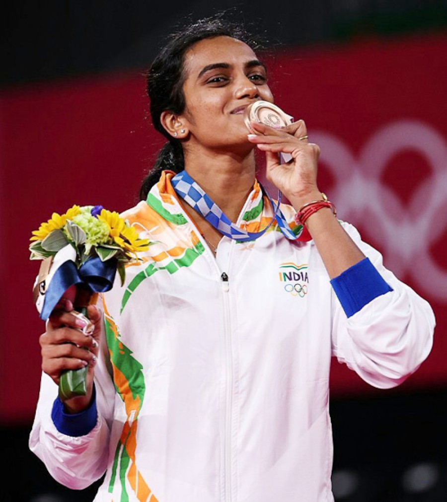 नई दिल्ली। भारतीय बैडमिंटन खिलाड़ी पीवी सिंधु ने टोक्यो ओलंपिक में महिला एकल मैच में कांस्य पदक जीता है। पीवी सिंधु ने चीन की ही बिंग जियाओ को शानदार मुकाबले में 21-13 और 21-15 से हराया और इस जीत के साथ वे दो ओलंपिक पदक जीतने वाली पहली भारतीय महिला खिलाड़ी बन गई हैं। पीवी सिंधु ने रियो 2016 में रजत पदक जीता था। राष्ट्रपति रामनाथ कोविंद, प्रधानमंत्री नरेंद्र मोदी, खेलमंत्री अनुराग ठाकुर और देश के कोने-कोने से लोगों ने पीवी सिंधु को उनकी इस उपलब्धि के लिए बधाई दी है। राष्ट्रपति रामनाथ कोविंद ने सिंधु की जीत पर उन्हें बधाई दी और कहा कि उन्होंने निरंतरता, समर्पण और उत्कृष्टता का एक नया पैमाना स्थापित किया है, भारत को गौरवांवित करने केलिए उन्हें मेरी ओर से हार्दिक बधाई।