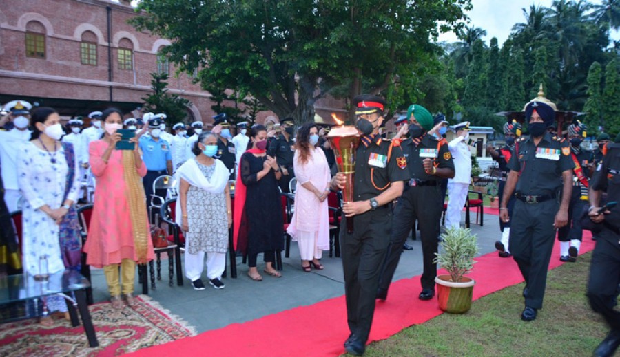 पोर्ट ब्लेयर। भारत और पाकिस्तान के बीच वर्ष 1971 के युद्ध में भारत की जीत की 50वीं वर्षगांठ समारोह के क्रम में अंडमान एवं निकोबार द्वीपसमूह के पोर्ट ब्लेयर स्थित सेलुलर जेल में स्वर्णिम विजय वर्ष विजय ज्योति लाई गई। सेना की अंडमान एवं निकोबार कमान ने सेलुलर जेल में विभिन्न कार्यक्रम आयोजित किए। इन कार्यक्रमों में संयुक्त सेनाओं के दस्ते की बैंड डिस्प्ले, एक प्रकाश एवं ध्वनि शो और 1971 युद्ध पर आधारित एक लघु फिल्म शामिल हैं। आर्मी कंपोनेंट कमांडर ब्रिगेडियर राजीव नागयाल कार्यक्रम में मुख्य अतिथि थे।